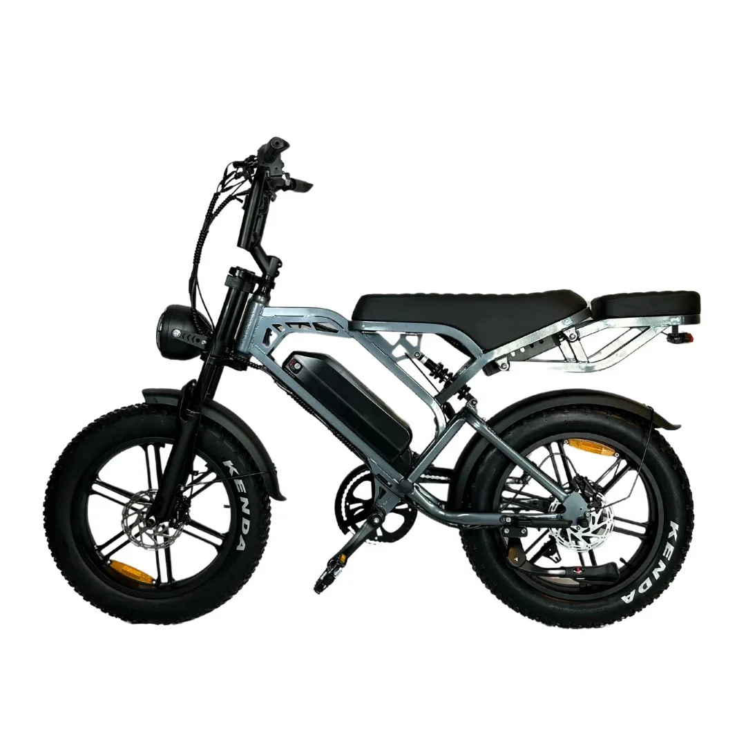 V20 Pro Fatbike Donkergrijs + Achterzitje + Alarmsysteem + Voetsteunen + Voorrek